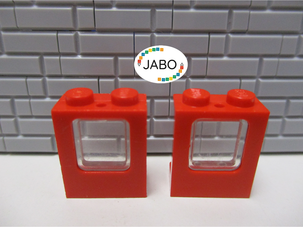 (A6/5/2) Lego 2x 2377c02 Fenster rot Scheibe trans klar 10183